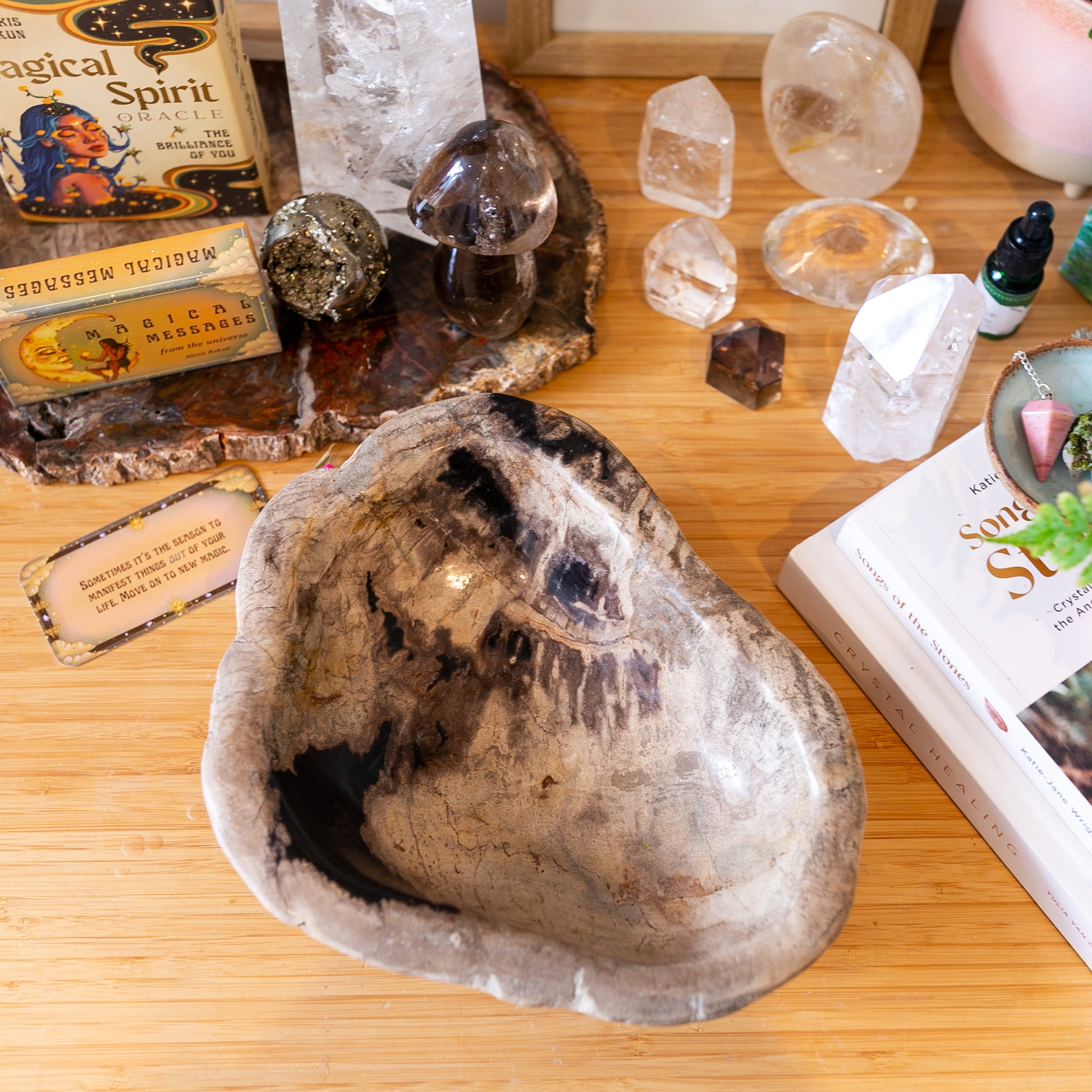 A beautiful 1.3kg Large Madagascan Petrified Wood Bowl.