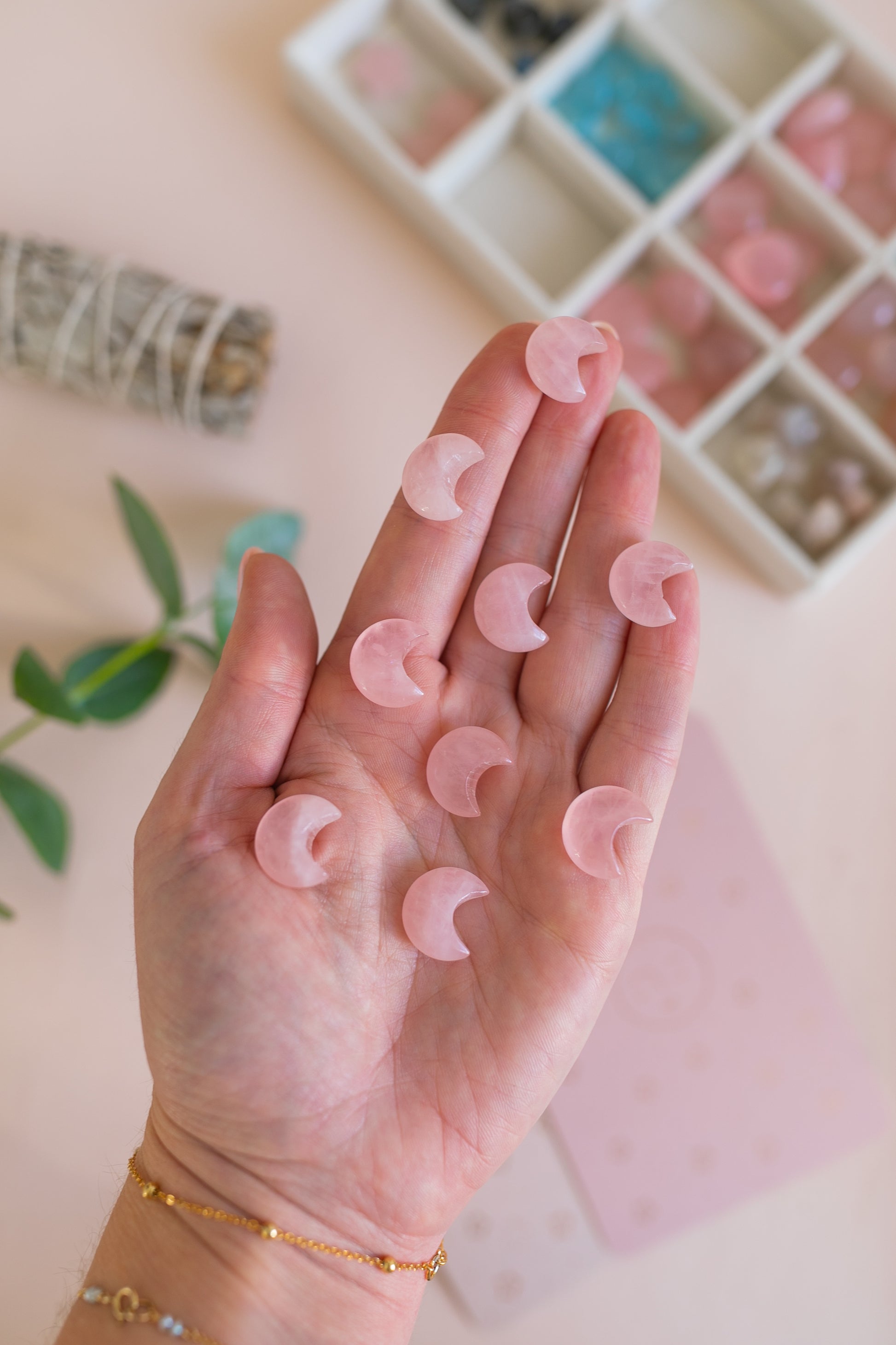 You will receive one Rose Quartz Moon, intuitively chosen from the selection above.